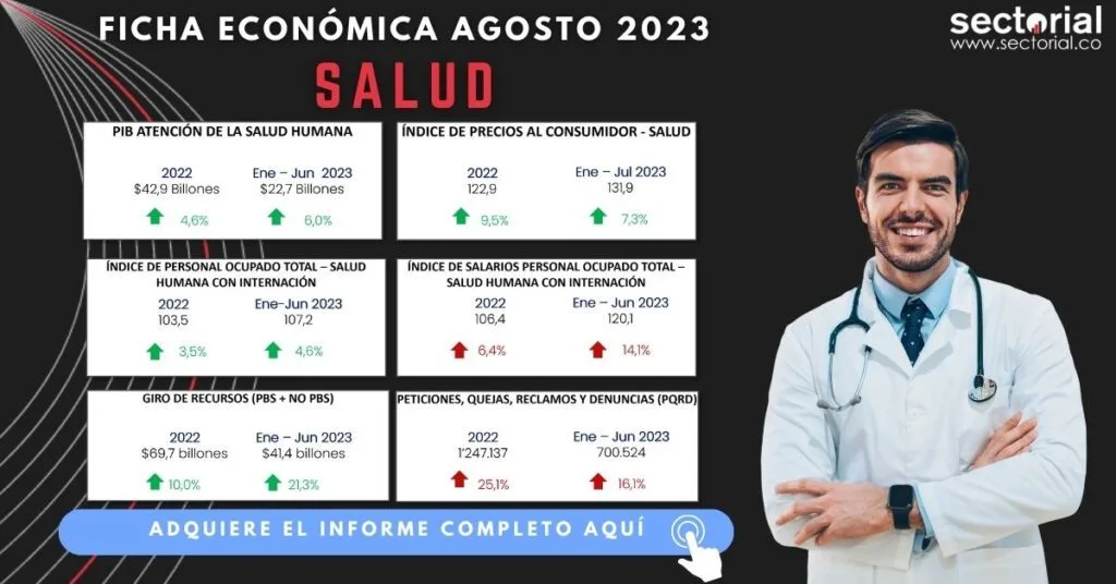 A junio de 2023, el valor agregado del sector logró crecer un 6,0%, cifra superior a la exhibida por la economía agregada (1,7%). Se espera que, a pesar de las deterioradas condiciones macroeconómicas, el sector cierre el año consolidando su crecimiento. Sin embargo, las EPS se encuentran atravesando una fuerte crisis financiera, explicada principalmente por la insuficiencia de la UPC para financiar los servicios y tecnologías del Plan Beneficios en Beneficios (PBS). En consecuencia, los aseguradores enfrentan altos niveles de siniestralidad, lo que, a su vez, se ha traducido en que cerca del 61% de las EPS del país han estado operando a pérdida. A pesar de esto, se identifican oportunidades de crecimiento para el sector en torno al turismo médico.