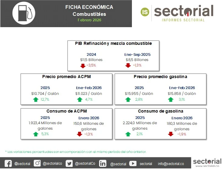 El sector de combustibles en Colombia atraviesa un periodo de estabilización fiscal sin precedentes, marcado por el cierre del déficit del Fondo de Estabilización de Precios de los Combustibles (FEPC). Esta coyuntura permitió una reducción de $500 en el precio de la gasolina corriente a partir de febrero de 2026, buscando aliviar las presiones inflacionarias. A pesar de un consumo resiliente liderado por el ACPM (diésel), que creció 5,4 % en 2025 impulsado por el transporte de carga, la producción industrial de refinación enfrenta contracciones del 1,3 %. El sector se reconfigura hacia una mayor dependencia de las importaciones, proyectando que para 2040 el 60,0 % de la gasolina será de origen extranjero, de acuerdo con la Unidad de Planeación Minero Energética (UPME), lo que obliga a robustecer la infraestructura logística y la coordinación operativa para garantizar la seguridad energética nacional.
