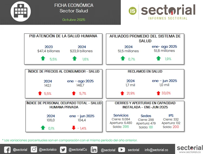 La situación se agrava debido a la insuficiencia de la Unidad de Pago por Capitación (UPC), cuyo déficit se intensificó en 2025 ante el incremento de la inflación en salud, que en agosto alcanzó el 5,7%, superando en 0,4 puntos porcentuales el crecimiento de la UPC para este año. La crisis financiera genera severas repercusiones operativas: durante el primer semestre de 2025 se registró el cierre de 6.084 servicios de salud, según datos de la Unión de Empresas del Sector Salud (UNIPS). Al mismo tiempo, la insatisfacción de los usuarios ha aumentado de manera alarmante, reflejándose en un incremento del 33 % en los reclamos.